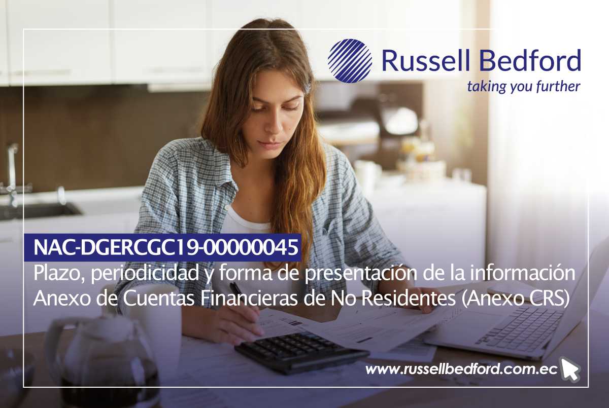 Boletín Tributario | El Servicios de Rentas Internas, mediante Resolución NAC-DGERCGC19-00000045. Indicó que se deberá presentarse el Anexo de Cuentas Financieras de No Residentes (Anexo CRS) de manera anual de conformidad con el formato y especificaciones técnicas disponibles en el sitio web del Servicio de Rentas Internas, en el que se reportará la información del ejercicio fiscal correspondiente al periodo comprendido entre el 01 de enero al 31 de diciembre de cada año. Este