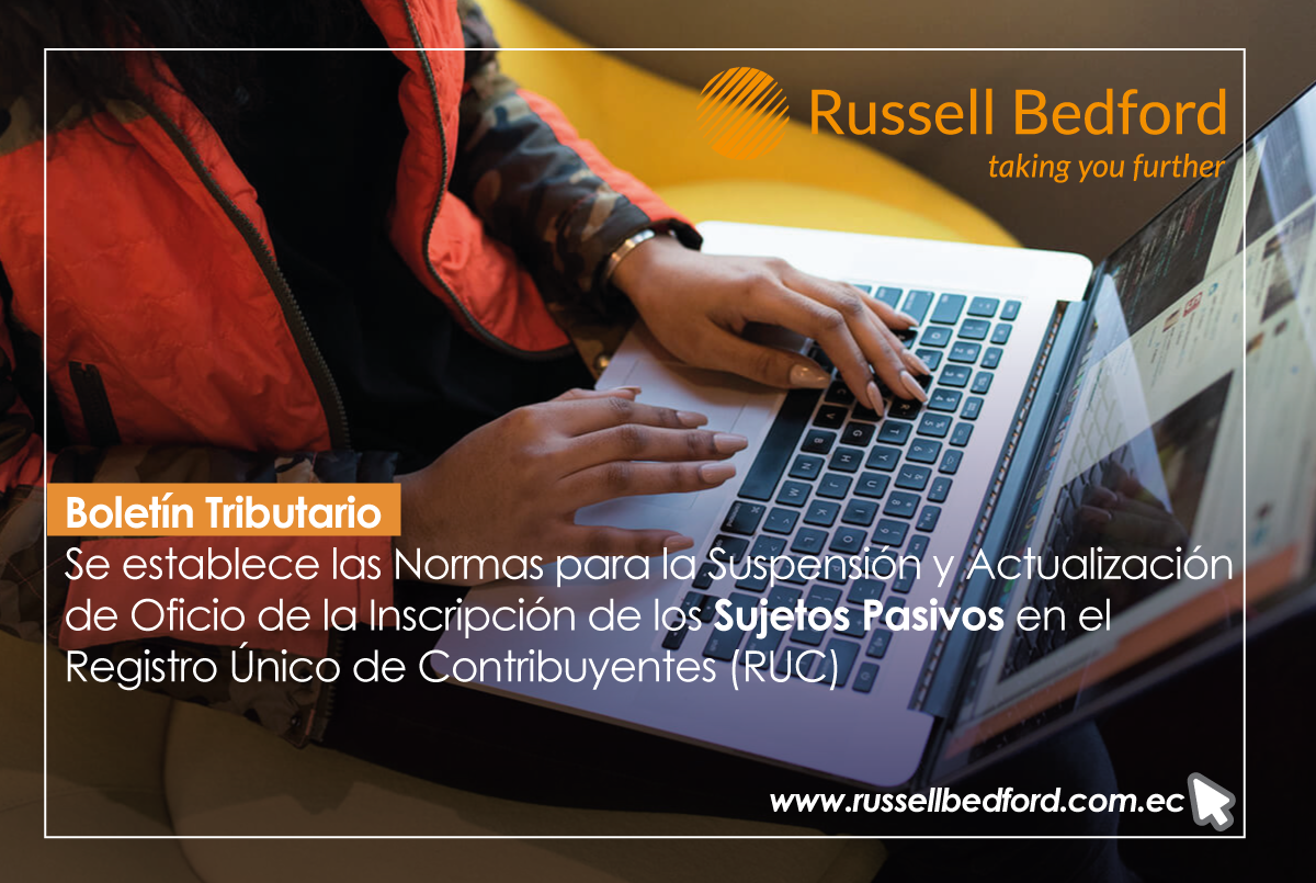 Boletín Tributario | Se establece las Normas para la Suspensión y Actualización de Oficio de la Inscripción de los Sujetos Pasivos en el Registro Único de Contribuyentes (RUC). Descarga toda la información AQUÍ: https://russellbedford.com.ec/…/No.-NAC-DGERCGC21…